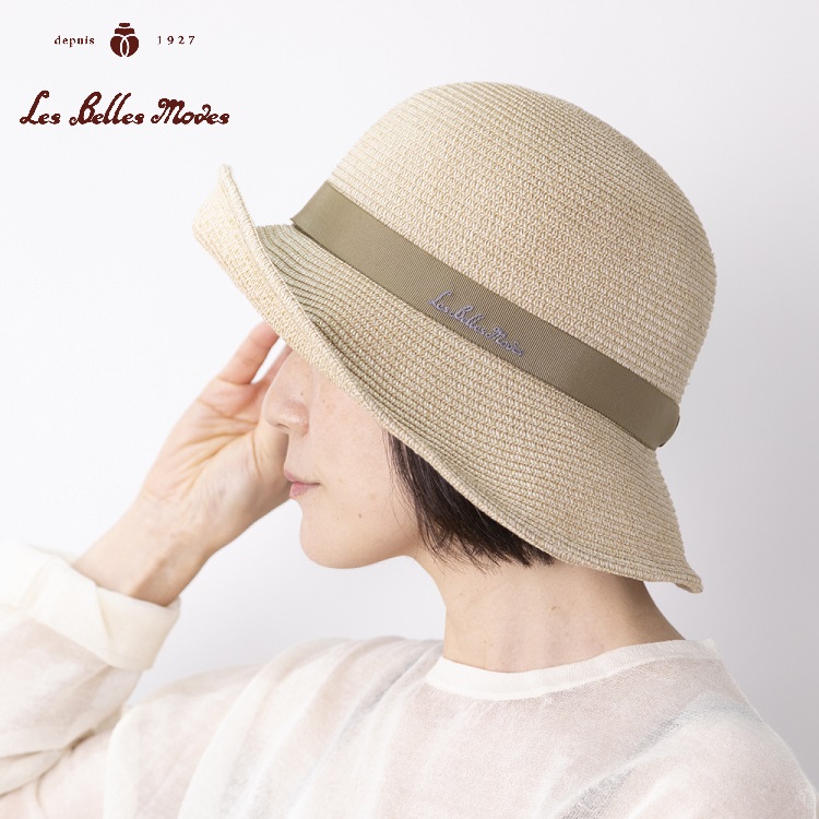 ●コットン混の天然風ブレードを、熟練の職人技で丁寧に縫い上げたクローシュ。飾りリボンを後ろでシンプルにまとめた優美なデザインです。