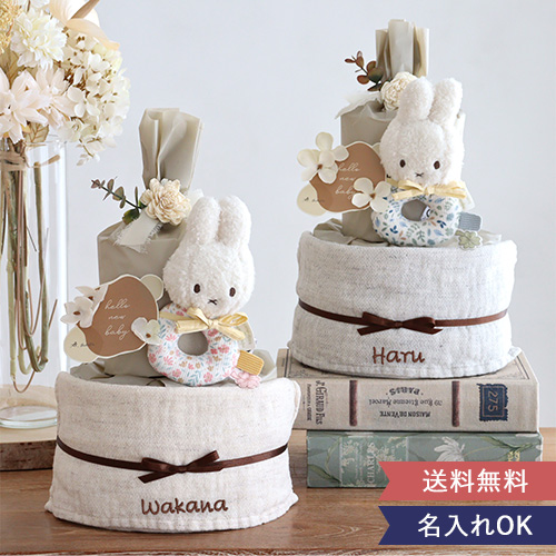 【出産祝い】miffy x Little Dutch ナチュラルタオルおむつケーキ