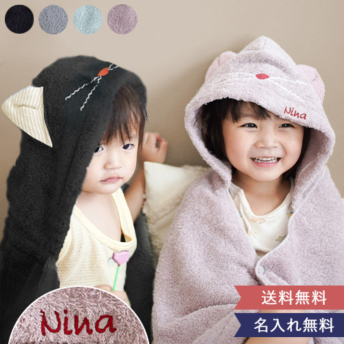 出産祝い ねこさんフード付バスタオル 男の子 女の子 今治タオル おくるみ ねこ 猫耳 名入れ 刺繍 コンテックス ギフト 送料無料