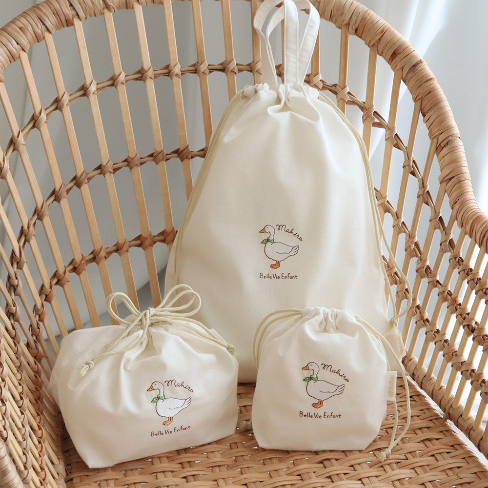 *巾着バッグ3点に無料で同じお名前の刺繍が入ります。