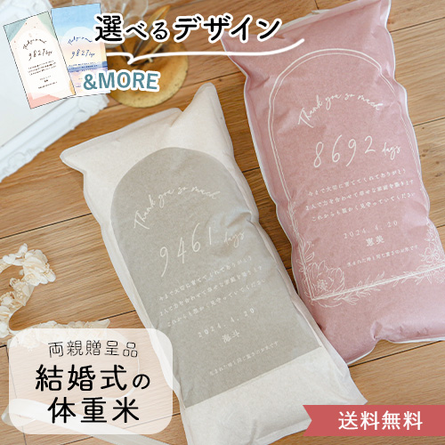 令和7年産 結婚式 体重米 子育て感謝状デザイン 新郎新婦セット | 両親贈呈品 ウエイトライス ウェディング 米 おしゃれ 人気 出生日数