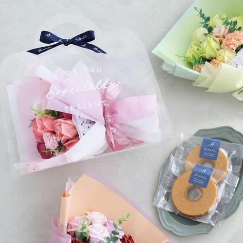 ソープフラワー クリアバッグブーケ+ミニバームクーヘンセット