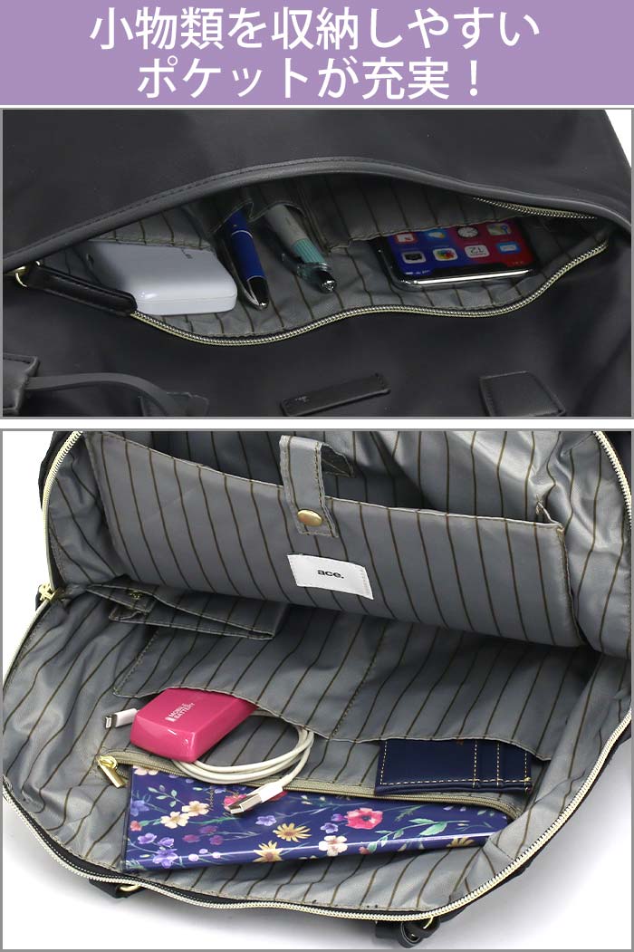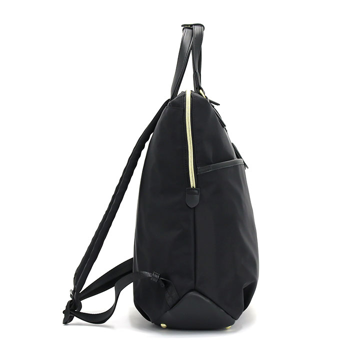| オフィシャルな場面でもカジュアルな場面でもシーンを選ばないシンプルなデザインシリーズ『エセンシア』登場。 あまり大きく見えず、女性が使いやすいA4サイズ収納のレディースビジネスリュックで普段の通勤にちょうど良いコンパクトなサイズ感です。 2way仕様でトートバッグにもなり、シーンによって持ち方の使い分けが可能。 内装は1気室で、13.3インチPC収納対応。小物の収納にも便利なポケットも充実しています。 水筒やペットボトルなどを収納できるペットボトルホルダー付き。 前面ファスナーポケット部分には名刺やペンなどを収納できるオーガナイザーポケット搭載。 ストライプ柄の内生地がとってもおしゃれ。 ややゆとりのあるマチ幅は、化粧ポーチの収納も余裕です。両手がフリーになるビジネスリュックは、保育園の送り迎えが日課のお仕事ママに大人気のモデルです。 |