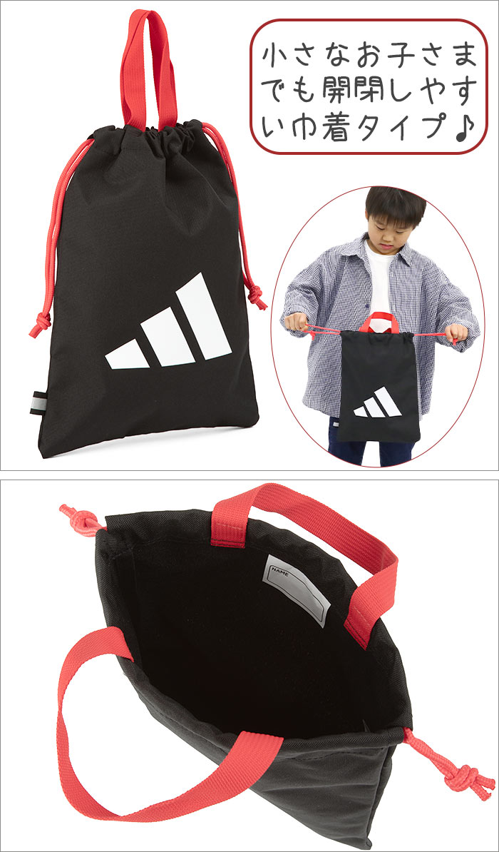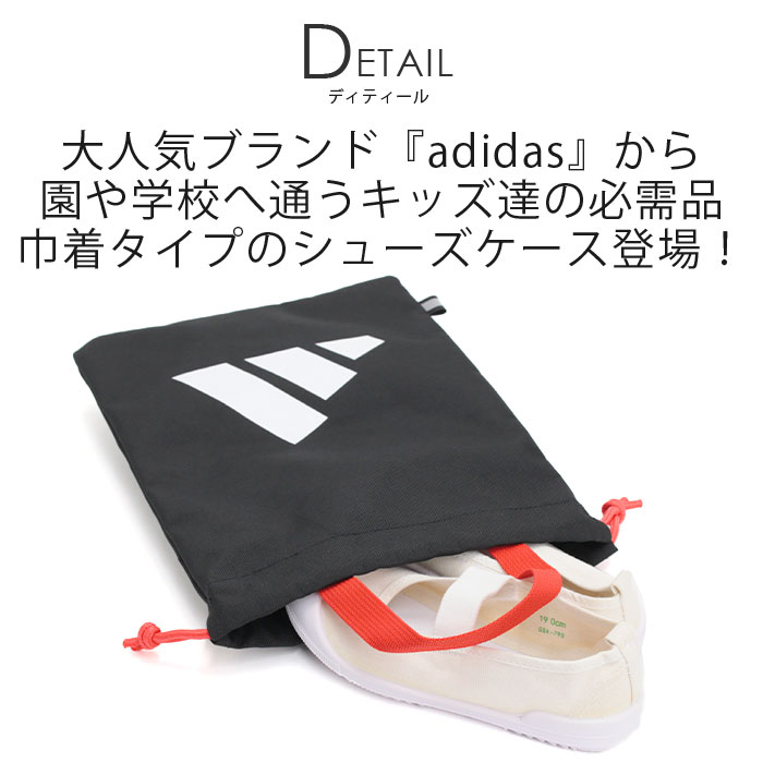 | 大人気ブランド「adidas」から小さなお子さまでも開閉しやすい巾着タイプのスクール用キッズシューズケーズ登場。 環境に配慮したリサイクルポリエステル素材を採用。フロントの大きなロゴプリントが目を引くデザイン。 通園、通学時にマチのないスマートな形は持ち運びしやすく、幼稚園や学校の荷物掛けにさげる時もコンパクトに収まります。 内側には、名前が書けるタグ付き!サイドのタグに安全反射素材を採用。夕方や夜間にも安心して使用できます。 シューズ入れとしてだけでなく、小さめの手提げバックとしても使えます。 軽くて扱いやすい素材とシンプルな形状が、お子様も使いやすいアイテムです。 プレゼントやお祝いにもオススメです。 |