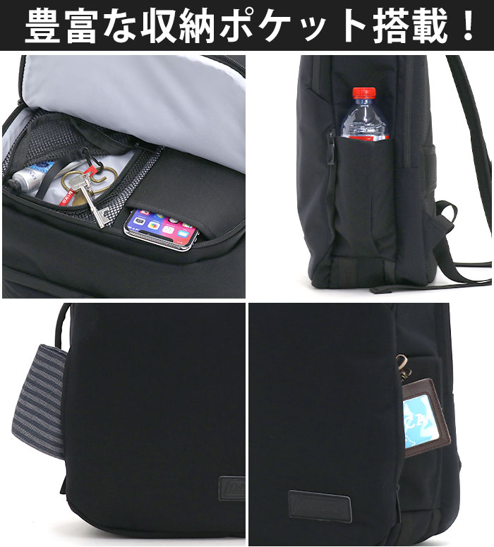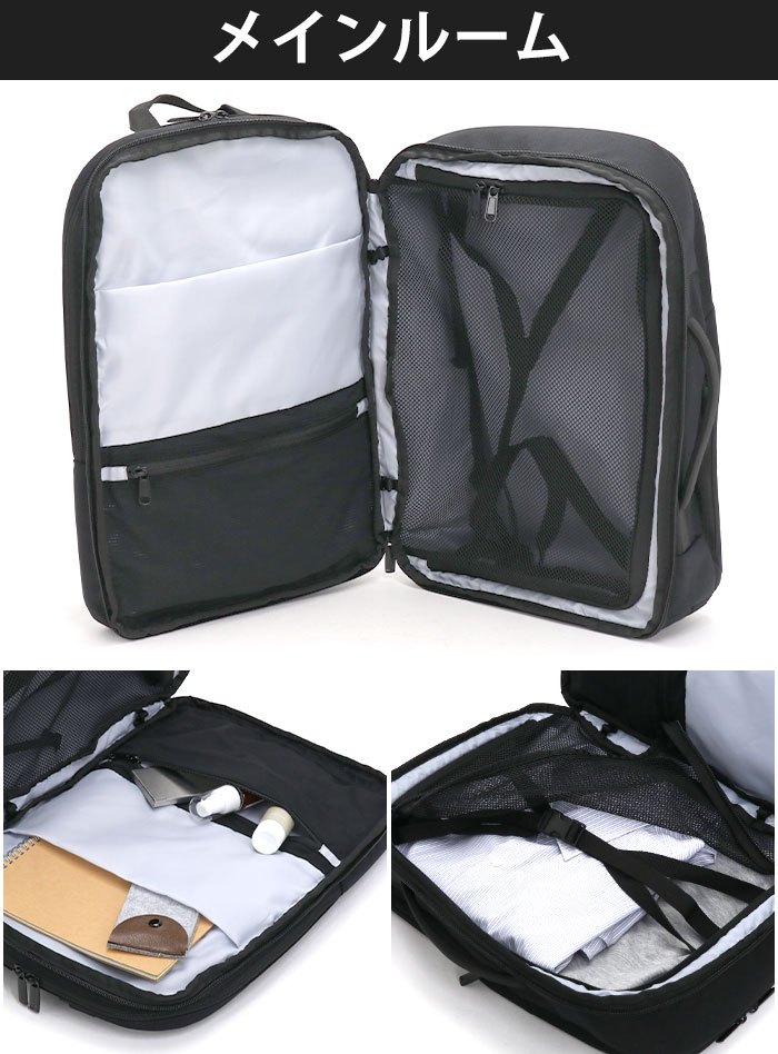 | 新しいビジネスシリーズ『OUTBIZ アウトビズ』登場! アウトドアブランドが生み出す背負い心地や快適性に優れた性能をビジネスバッグに融合させたシリーズです。 ビジネスシーンで使いやすいシンプルなフロントデザインに日々の通勤を快適にする背面とショルダー設計が魅力です。 1泊2日程度の出張に対応可能。ビジネス上必要になるタブレットやノートPCの収納に最適なPCコンパートメントに小物類をスマートに収納できるポケットを多数配置。メインコンパートメントは、フルオープン出来て荷物の整理収納がスムーズに行えます。 素材は、耐久性の高い1000デニールナイロン素材を採用。荷物のピックアップ時などに便利なハンドルをサイドとボトムに配置。 背面にトローリーバッグのプルドライブハンドルに固定し、走行時のバッグのふらつきを防ぐセットアップ機能を搭載。 シンプルで洗練されたデザインと収納性に優れたスーツにもカジュアルにもマッチするアーバンライフにぴったりのバッグです。 |