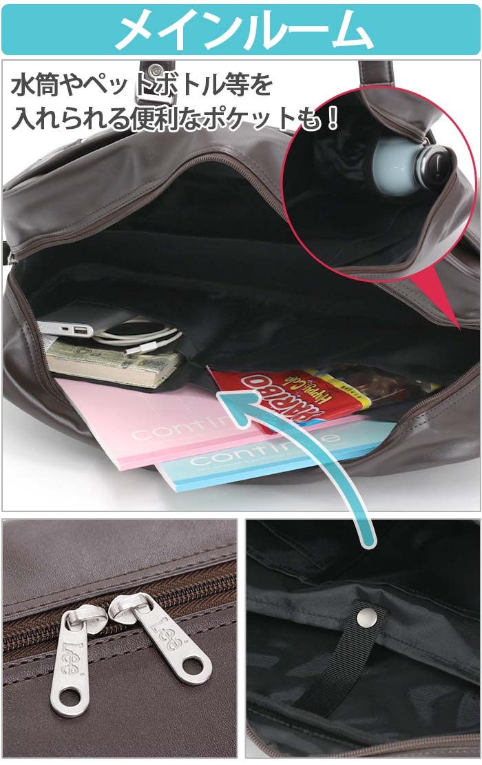 | シンプルなボディに、『Lee』のブランドロゴ刺繍がポイントのスクールボストンです。 開口部はダブルファスナー仕様で開閉しやすく、荷物の出し入れスムーズ♪ メインルームはA4サイズ対応で、教科書やノートはもちろんお弁当や着替えなども入る通学にも安心のサイズ。 内側にペットボトルや水筒を立てて収納できるポケットや多数のオープンポケットがあり、整頓収納にとても便利。 前面にオープンポケットとインナーポケット付きのファスナーポケットもあり、使用頻度の高いアイテムの収納にも◎ さらに、お気に入りのキーホルダーや鍵などを掛けられるDカンが2つ付いています。 底板付きなので重い荷物を入れても型崩れしにくいのも嬉しいポイント。 四隅はしっかりとコーナーガードされており、底鋲付きなので地面に置いても安心です。 シンプルかつ機能的なデザインが、毎日の通学で活躍すること間違いなしのバッグです。 |