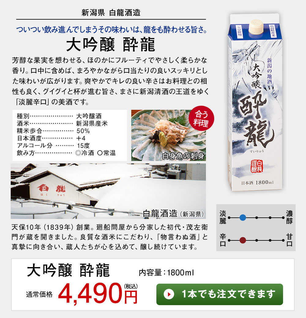 ■〈新潟県〉白龍酒造【大吟醸 酔龍】