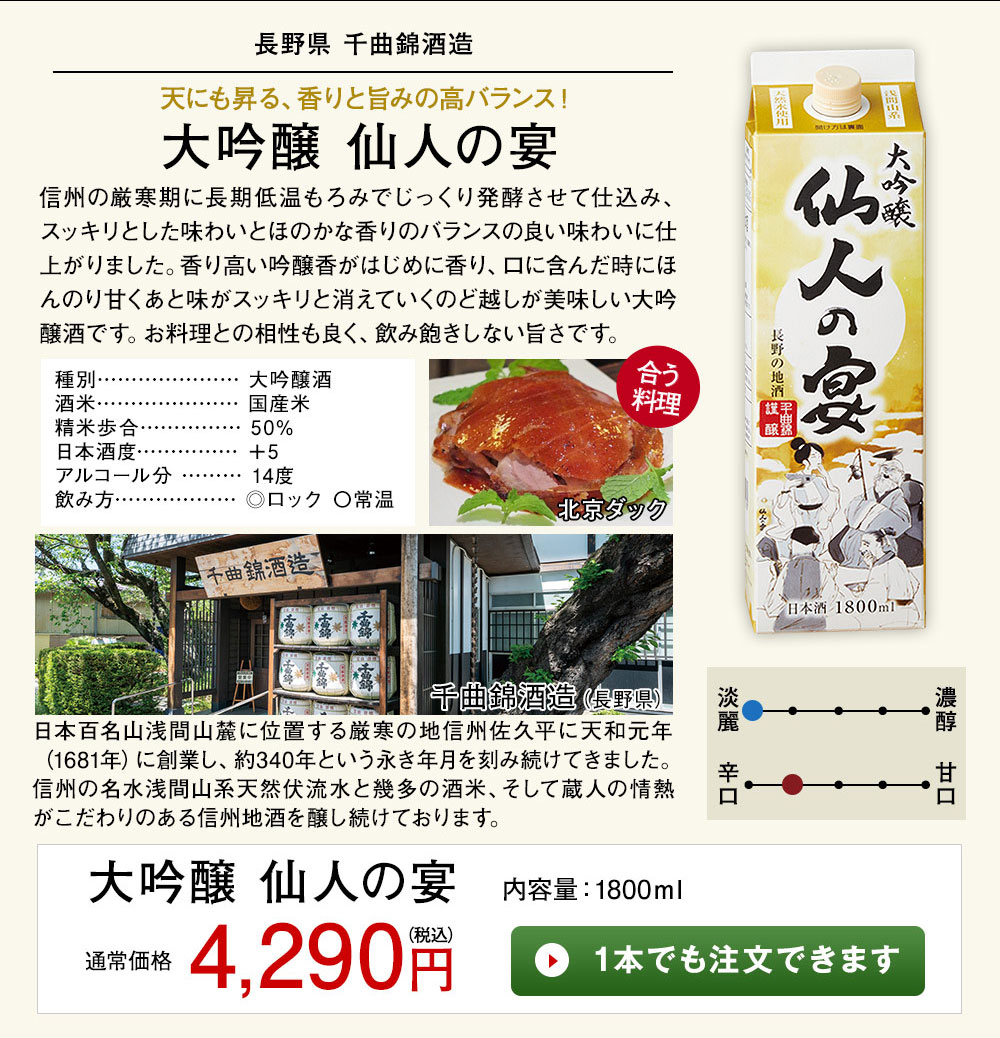 ■〈長野県〉千曲錦酒造【大吟醸 仙人の宴】