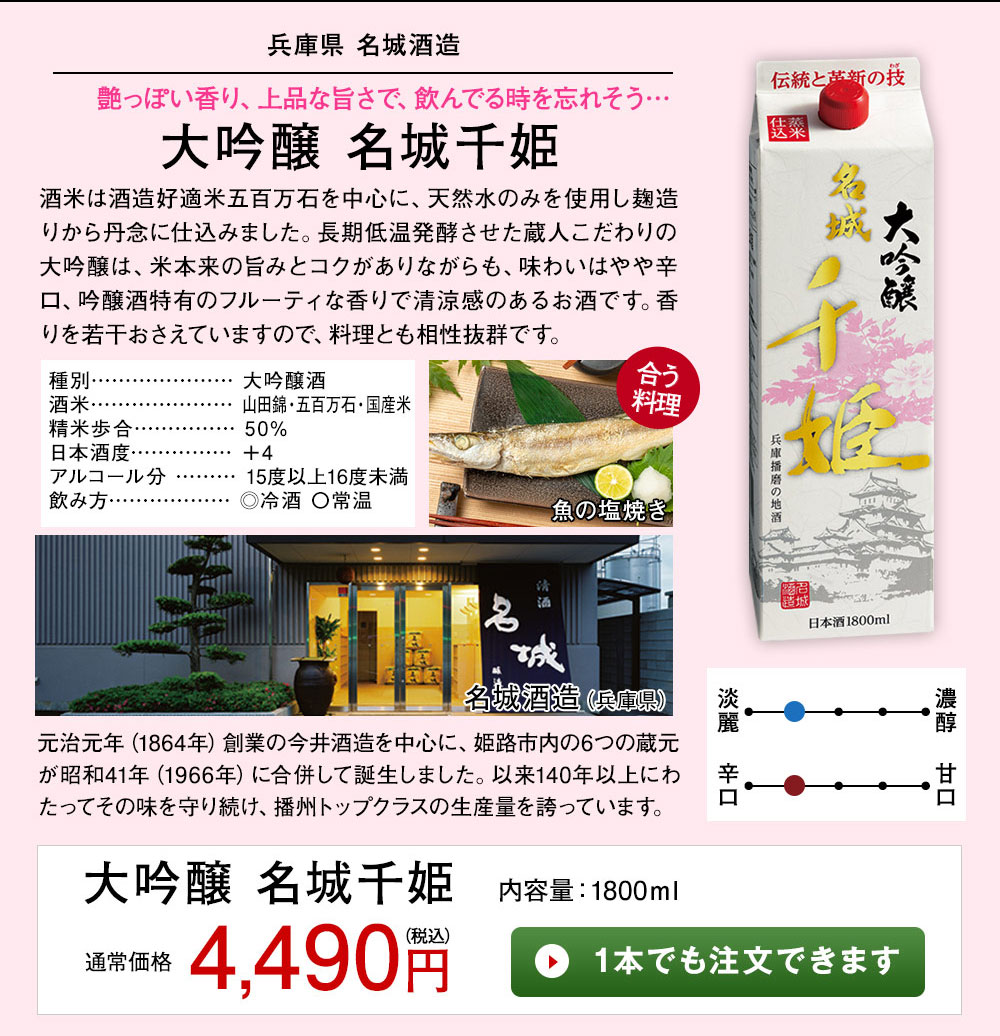 ■〈兵庫県〉名城酒造【大吟醸 名城千姫】