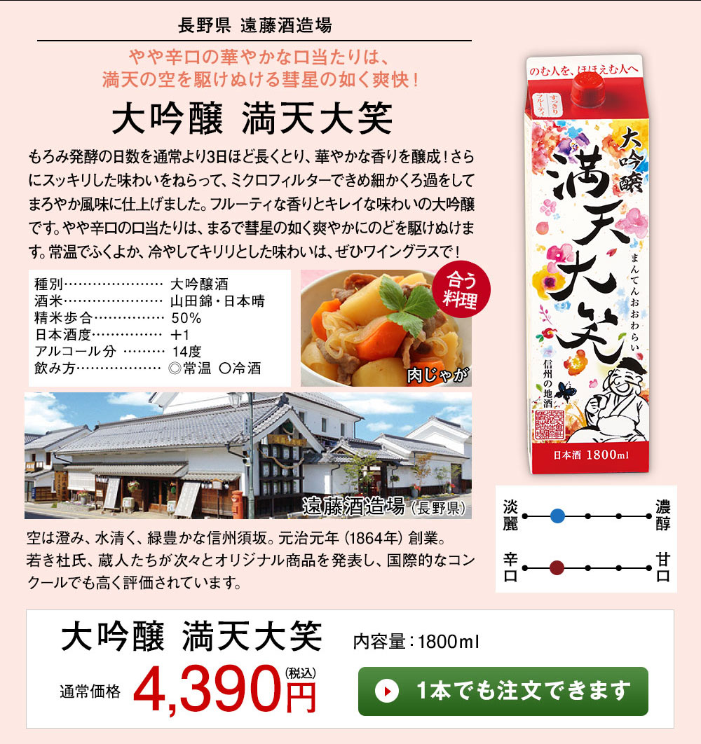 ■〈長野県〉遠藤酒造場【大吟醸 満天大笑】