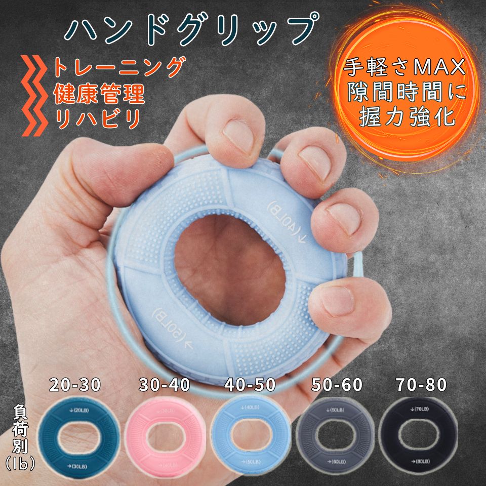 ハンドグリップ 握力 トレーニング 筋力 指 リハビリ 高齢者 運動 健康管理 負荷別 強化 器具 手 リング型 ドーナツ型 タイヤ型