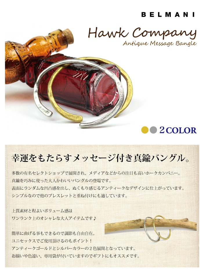 ブレスレット レディース バングル 幸運メッセージ Hawk company ホークカンパニー