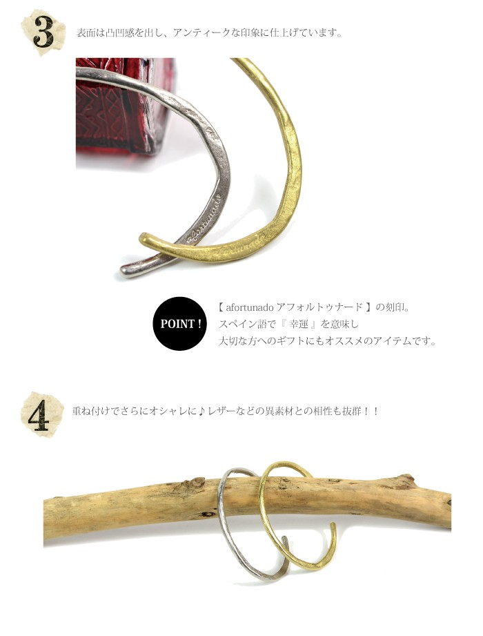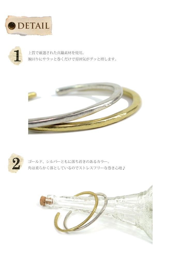 真鍮を巧みに使った大人かわいいバングルの登場です。