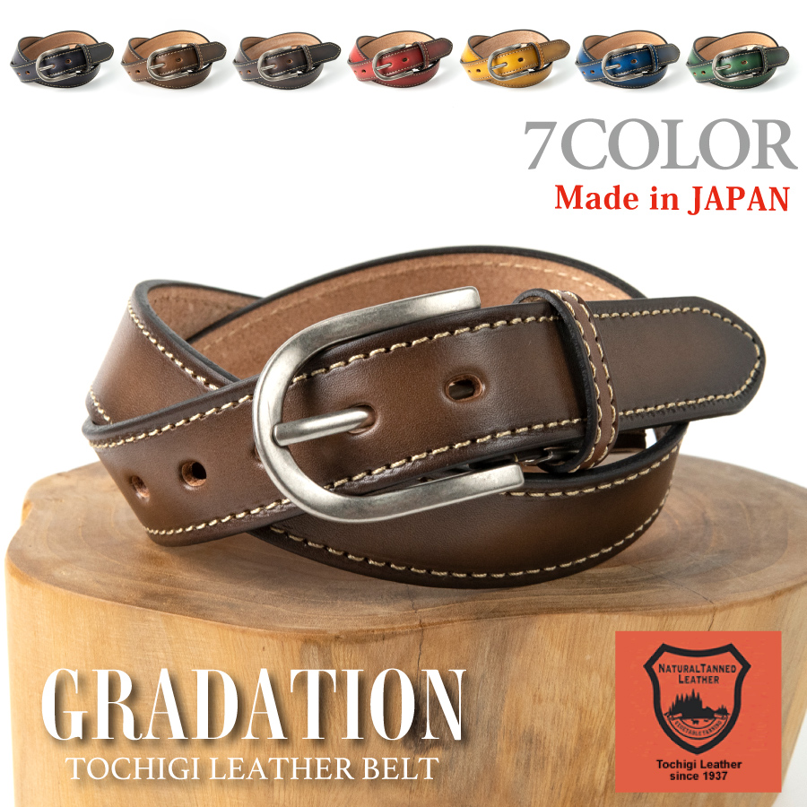 グラデーション栃木レザーステッチ35ミリ幅 ベルト メンズ 本革 レディース カジュアル
