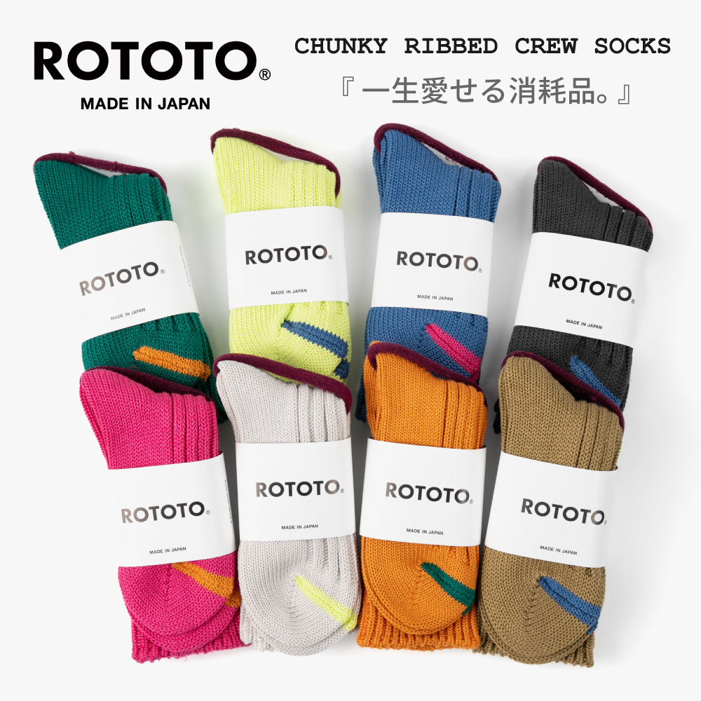 「R1398 CHUNKY RIBBED CREW SOCKS」の後継品番として、見た目の雰囲気はそのままに、少しだけ生地の厚みを抑えることで、様々な靴とコーディネートできるソックスとして生まれ変わりました。