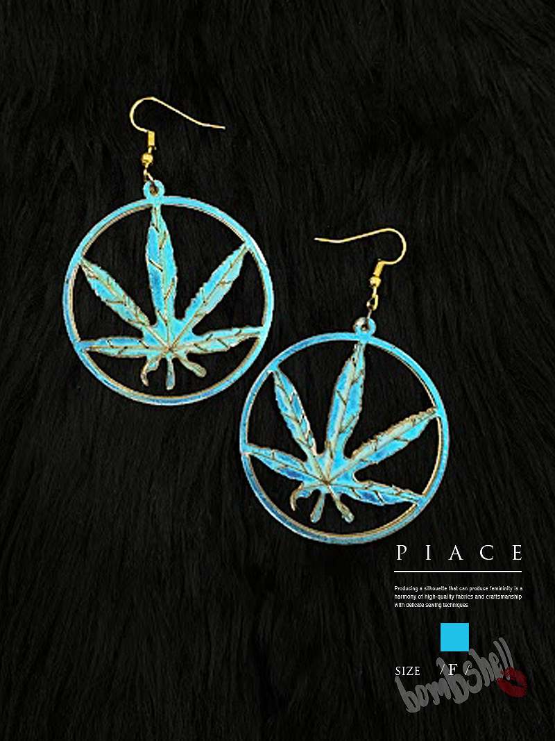 ☆ギラギラ輝くマリファナ柄のサークルピアスは、大きめデザインで目立ち度大!