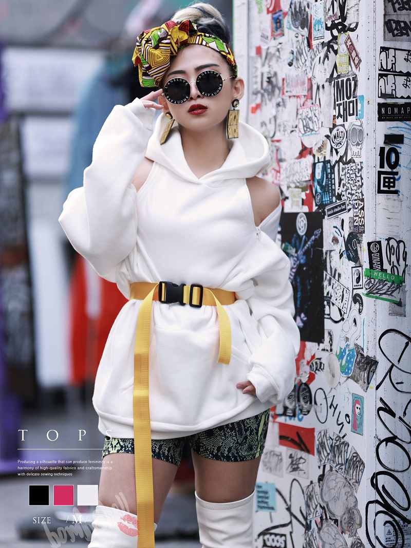 ☆セクシーさ爆発!ジップ開閉デザインの肌見せボリュームたっぷりのゆるだぼスウェットパーカー。