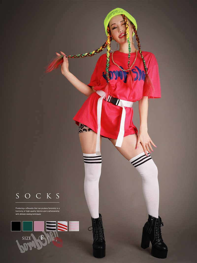メール便対応 グッズ Bbomb ニーハイソックス スリーライン カラ-ソックス サイハイ