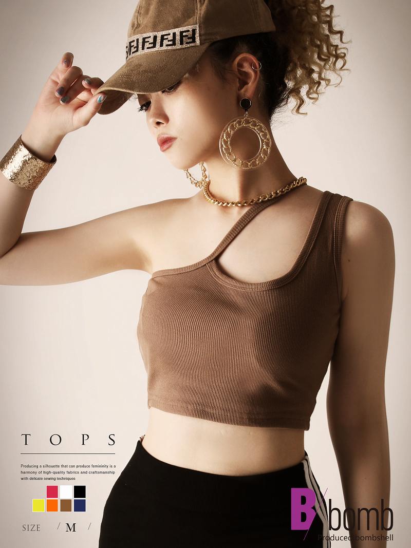 メール便対応 キャミソール・タンクトップ Bbomb タンクトップ トップス カップ付き アシンメトリ-
