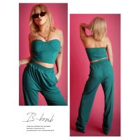 ☆ セクシーさ全開!ショート丈ベアトップとロングパンツのセットアップ。LA風のおしゃれスタイルを楽しもう♪