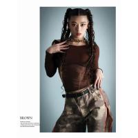 メール便対応 長袖カットソー Bbomb Y2K ギャルファッション 無地 メッシュトップス