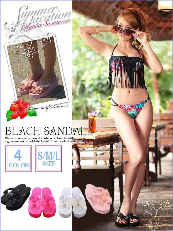 ◆Information◆ ☆大きなリボンで存在感を発揮し、単色ビキニも可愛く着こなせますッ♪ ☆ビビッドなcolorが目を惹くこと間違いなしの一足ですッ♪ ☆軽くてソフトな素材が履き心地抜群で長時間履いていても疲れないッ♪ ☆程よいウェッジソール高さでビーチでも美脚になれるッ♪ ◆カラー◆ ブラック/ピンク/ホワイト/チェリーピンク ◆サイズ◆ S/M/L ◆素材◆ EVA ◆商品仕様◆ /ヒール/ 5cm /ストーム/ 2.5cm ◆モデル◆ 名前:かなへぇ 身長:164cm 着用:Mサイズ