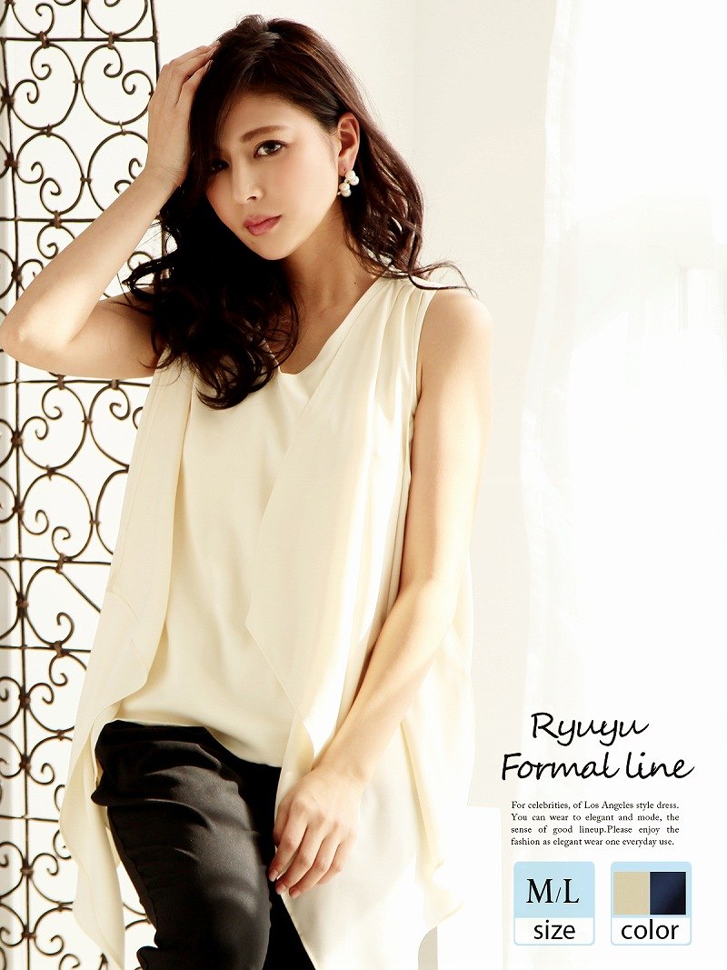 ☆フェイクレイヤードでドレープカーデを羽織ったようなデザインが大人coolなglamorousパンツスタイルドレス♪