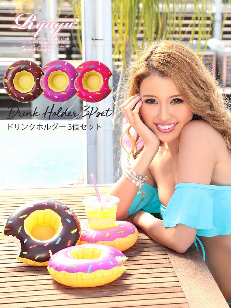 ◆Information◆ ☆ハッピーな気分でビーチやプールを盛り上げてくれるドーナツ型のドリンクホルダーはトレンドアイテム♪ ☆SNS映えもばっちりな大人気かわいいドリンクホルダーはビーチやプールやアウトドアで大注目間違いなしアイテム♪ ☆色鮮やかで目立ち度抜群なモチーフでドリンクホルダーとして使うのはもちろん、お菓子や小物入れとして使うのも◎♪ ◆カラー◆ ドーナツ ◆サイズ◆ フリーサイズ ◆素材◆ 塩化ビニール樹脂 ◆商品仕様◆ 内容:3点セット