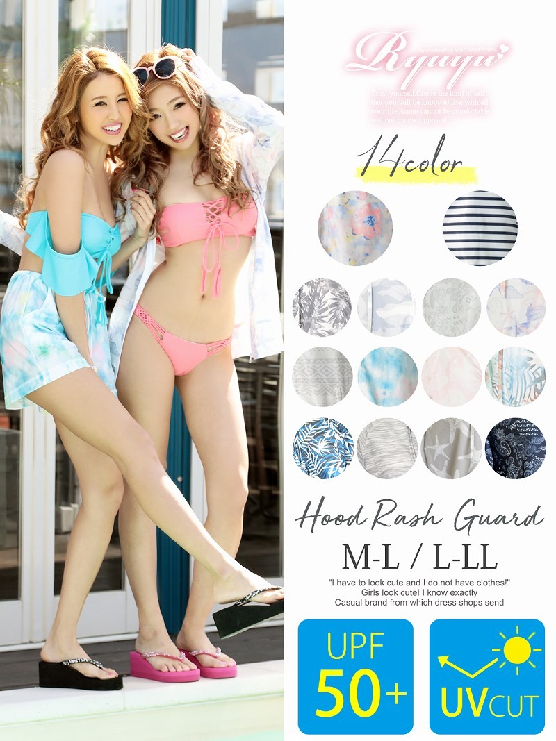 ◆Information◆ ☆渡辺加苗(かなへぇちゃん)渡辺加和(かずへぇちゃん)着用♪ ☆選べる豊富デザインの指穴つきラッシュガードはUVカット加工で日差しからしっかりガード♪ ☆ヒップまですっぽり隠れるロング丈でお洒落に体型カバーしてくれるフード付きビーチウェア♪ ☆さらっとした着心地のラッシュガードは水着の羽織りとしては勿論、キャンプなどのアウトドアにも大活躍♪ ◆カラー◆ フラワー/ボーダー/ボタニカル/カモフラージュ/ペイズリー/シェル/オルテガ/タイダイミント/マーブル/カラーリーフ/リーフ/スラブ/スターフィッシュ/ペイズリーネイビー ◆サイズ◆ M-L/L-XL ◆素材◆ ポリエステル87% ポリウレタン13% ◆商品仕様◆ 付属:× ファスナー:◯(前) パッド:× 透け感:× 裏地:× 伸縮:◯ ポケット:◯(横) ◆モデル◆ 名前:渡辺加苗 身長:164cm 着用:Mサイズ 名前:渡辺加和 身長:165cm 着用:Mサイズ 名前:一条マリカ 身長:156cm 着用:Mサイズ