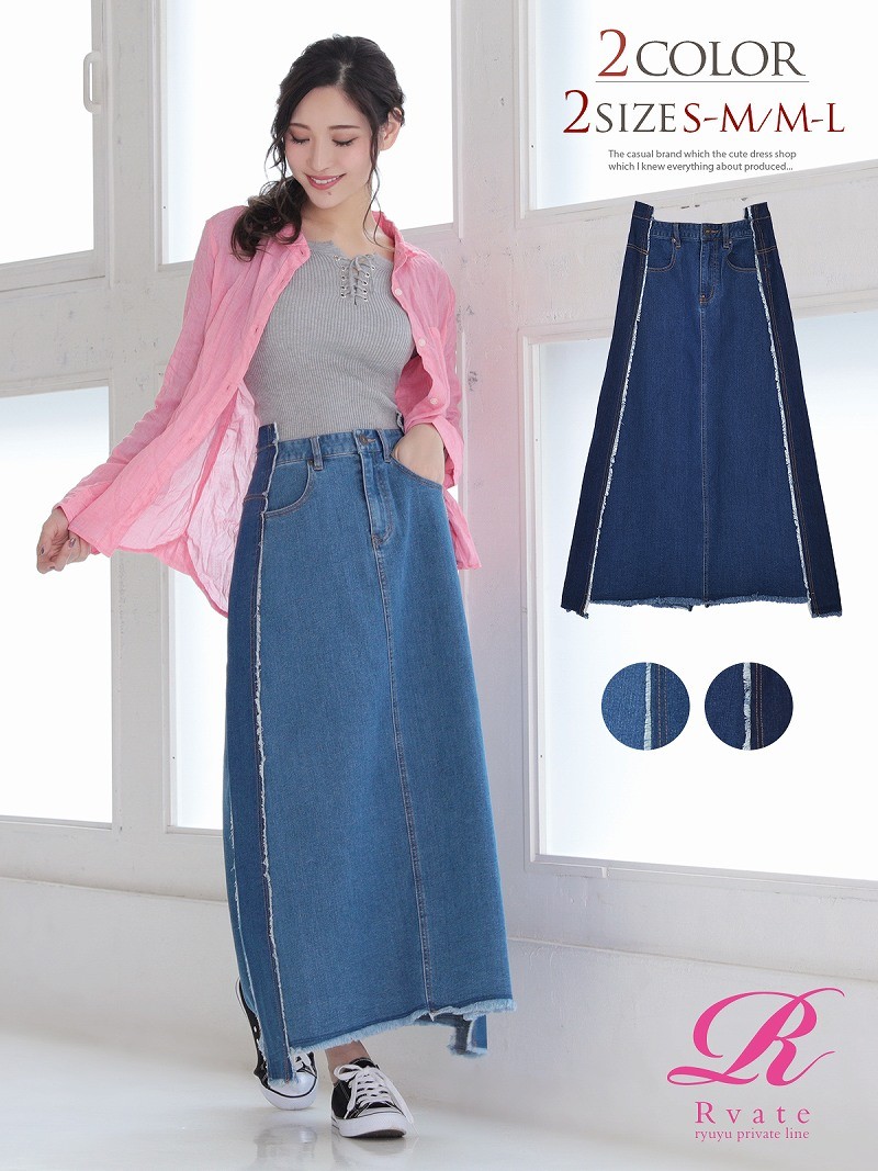 ◆Information◆ ☆サイドのリメイク風切り替えデザインが縦ラインを強調しウエストの細魅せ効果抜群のデニムロングスカート♪ ☆伸縮性のある生地でストレスフリーな着用感が嬉しいマキシスカートは裾のフリンジ加工が大人カジュアルスタイル実現♪ ☆後ろの一部はゴム仕様でトップスインも楽ちんなデニムスカートは裾にかけてフレアになってる女性らしいシルエットが高ポイント♪ ☆Ryuyu private lineのブランドRvate(アールベート)商品はキャバ嬢24時間!カワイイ!を実現♪ ◆カラー◆ ネイビー/ブルー ◆サイズ◆ S-M/M-L ◆素材◆ 綿 85% ポリエステル 9% レーヨン 5% ポリウレタン 1% ◆商品仕様◆ 付属:× ファスナー:◯(正面) 透け感:× 裏地:× 伸縮:◯ ポケット:◯ ◆モデル◆ 名前:中村朋美 身長:168cm 着用:Mサイズ