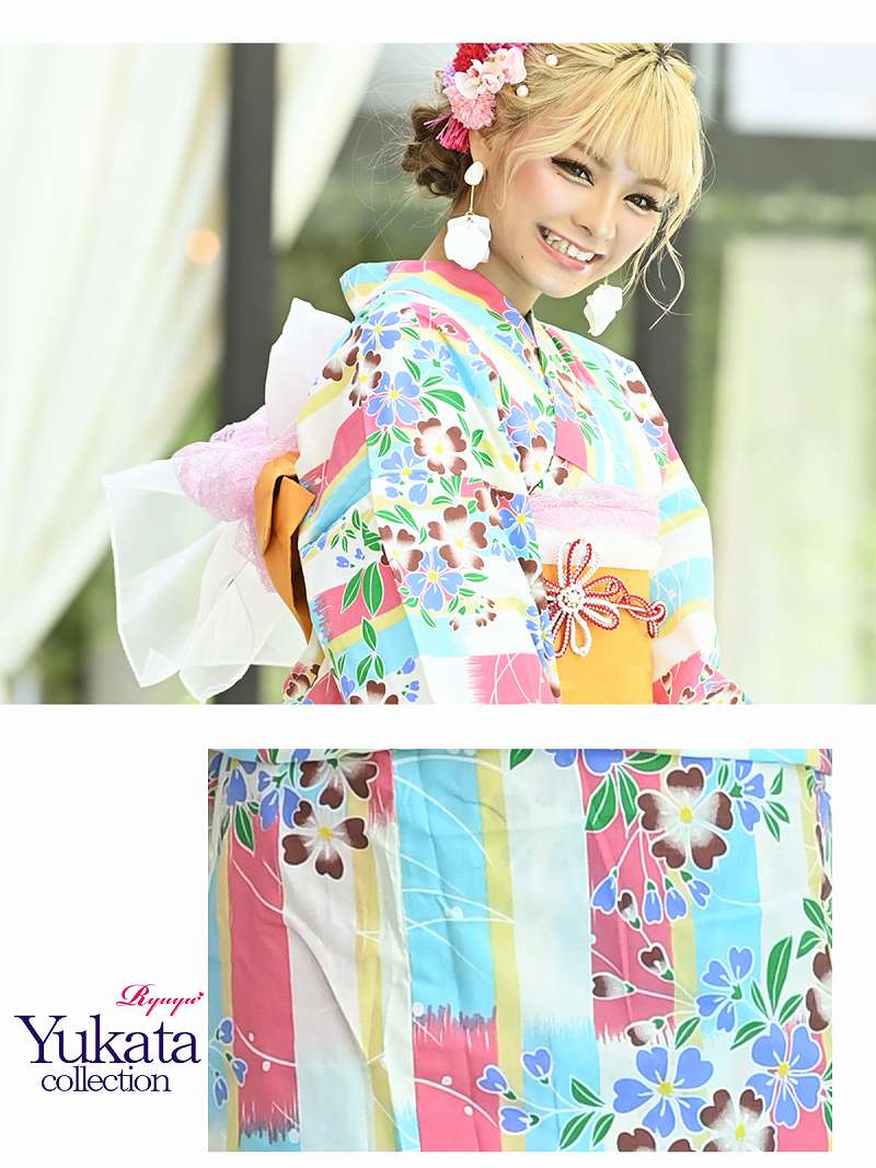 浴衣 セット レディース ゆかた 帯 下駄 キャバ Ryuyu 撫子 ピンク 水色 楽ちん
