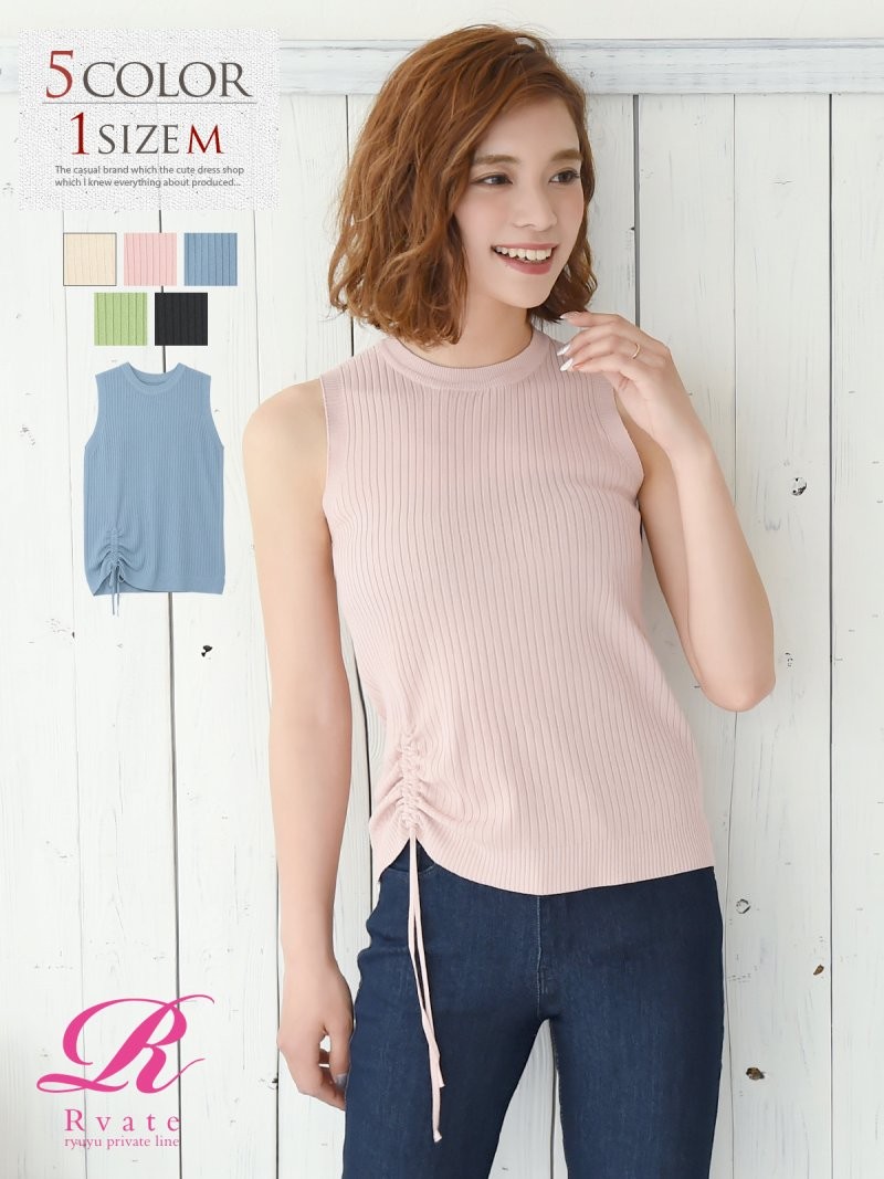 【メール便対応】ニット セーター トップス ドロスト タンクトップ 無地 ニット Rvate