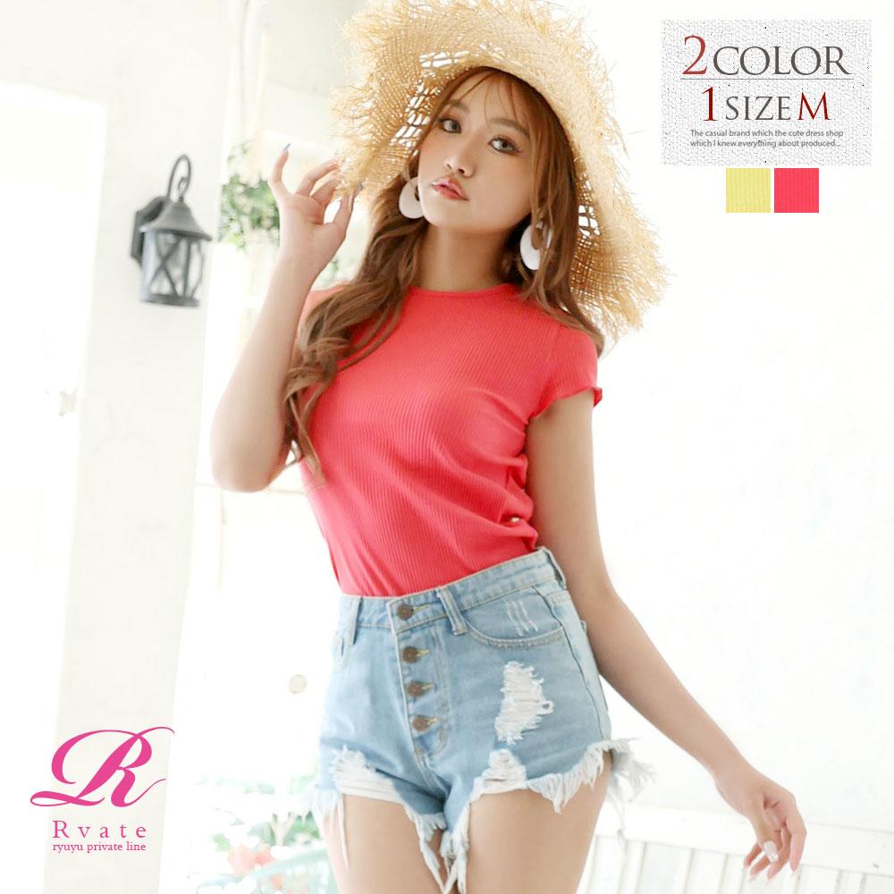 キャバTシャツ レディース トップス Tシャツ Tシャツ カットソー 半袖 リブ