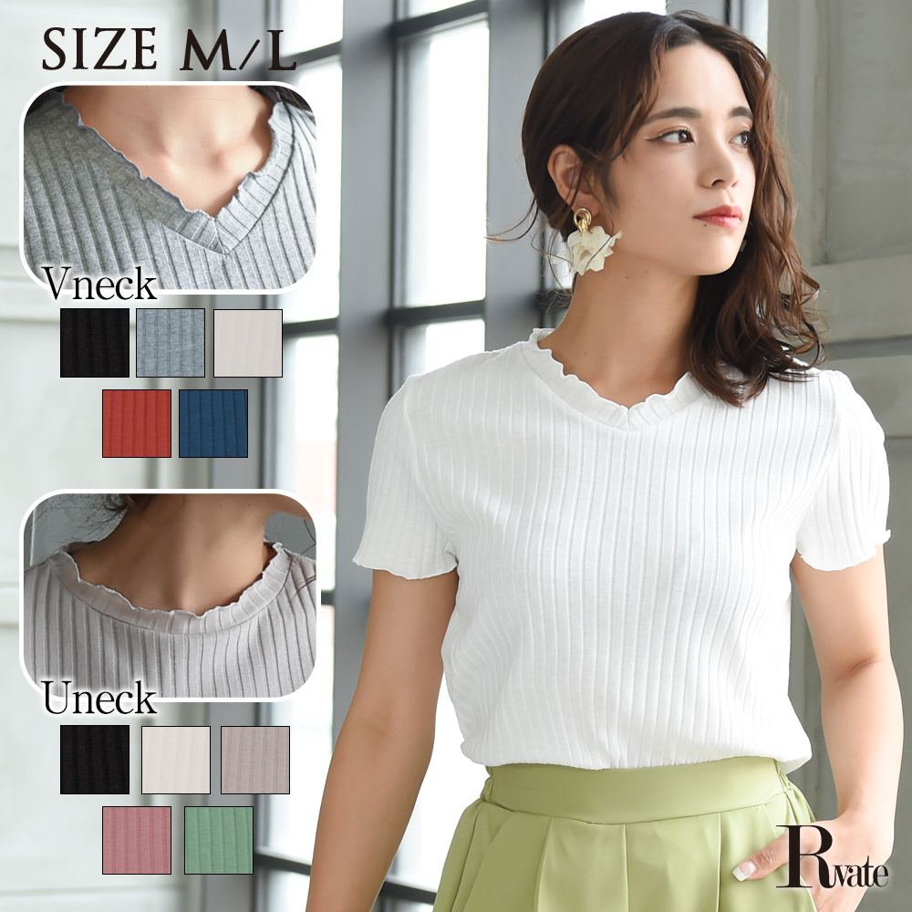 ◆Information◆ ☆首元、裾、袖の部分がギザギザの波型がキュートなスカラップデザインがガーリーなコーデからカジュアルコーデまで活躍してくれるベーシックアイテム♪ ☆ネックはUネックとVネックの2パターンから選べる無地トップスはカラバリ豊富だから色ち買いもおすすめな半袖Tシャツ♪ ☆リブの縦ラインが着痩せ効果を発揮してスタイルアップ魅せしてくれるシンプルレディーストップス♪ ☆Ryuyu private lineのブランドRvate(アールベート)商品はキャバ嬢24時間!カワイイ!を実現♪ ◆カラー◆ ブラック(丸首)/オフホワイト(丸首)/ミント(丸首)/ベージュ(丸首)/ピンク(丸首)/ブラック(V首)/オフホワイト(V首)/杢グレー(V首)/オレンジ(V首)/ネイビー(V首) ◆サイズ◆ M/L ◆素材◆ ポリエステル 65% 綿 35% ◆商品仕様◆ 付属:× ファスナー:× パッド:× 透け感:◯(オフホワイトのみ) 裏地:× 伸縮:◯ ポケット:× ※全て実寸です ◆モデル◆ 名前:せんり 身長:163cm 着用:Mサイズ 名前:秋山 結奈 身長:162cm 着用:Mサイズ