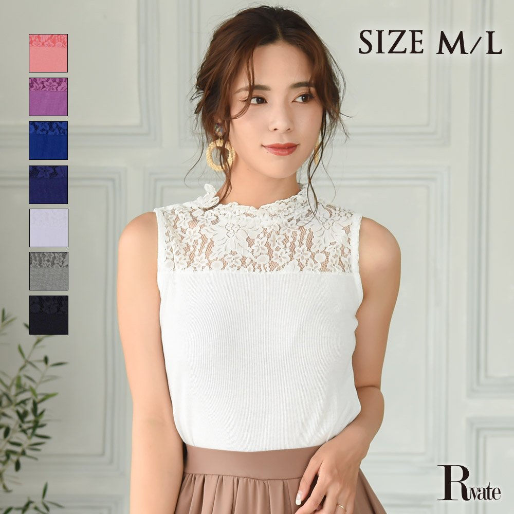 ◆Information◆ ☆レースが美しく品のあるレディーストップスは繊細なレースがリッチで、高見えするワンカラートップス♪ ☆プチハイネックが大人ムードで、すっきりフィットするシルエットがカジュアルにもキレイめにもスタイリング出来る大人かわいいノースリーブトップス♪ ☆首周りはゴム仕様で着脱ラクチンなトップスは柔らかく伸縮性があり、肌触りの良い生地で◎華やかながらも、デイリーコーデになじむカットソー♪ ☆Ryuyu private lineのブランドRvate(アールベート)商品はキャバ嬢24時間!カワイイ!を実現♪ ◆カラー◆ ブラック/オフホワイト/杢グレー/ネイビー/ブルー/ラベンダー/ピンク ◆サイズ◆ M/L ◆素材◆ 本体:ポリエステル 65% 綿 35% レース部分:ナイロン 90% ポリウレタン 10% ◆商品仕様◆ 付属:× ファスナー:× パッド:× 透け感:◯(オフホワイトのみ) 裏地:× 伸縮:◯ ポケット:× ※全て実寸です ◆モデル◆ 名前:せんり 身長:163cm 着用:Mサイズ 名前:秋山 結奈 身長:162cm 着用:Mサイズ
