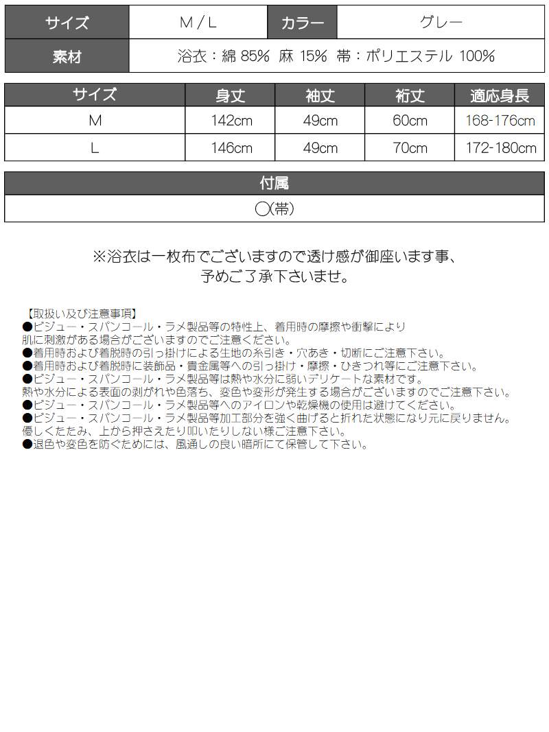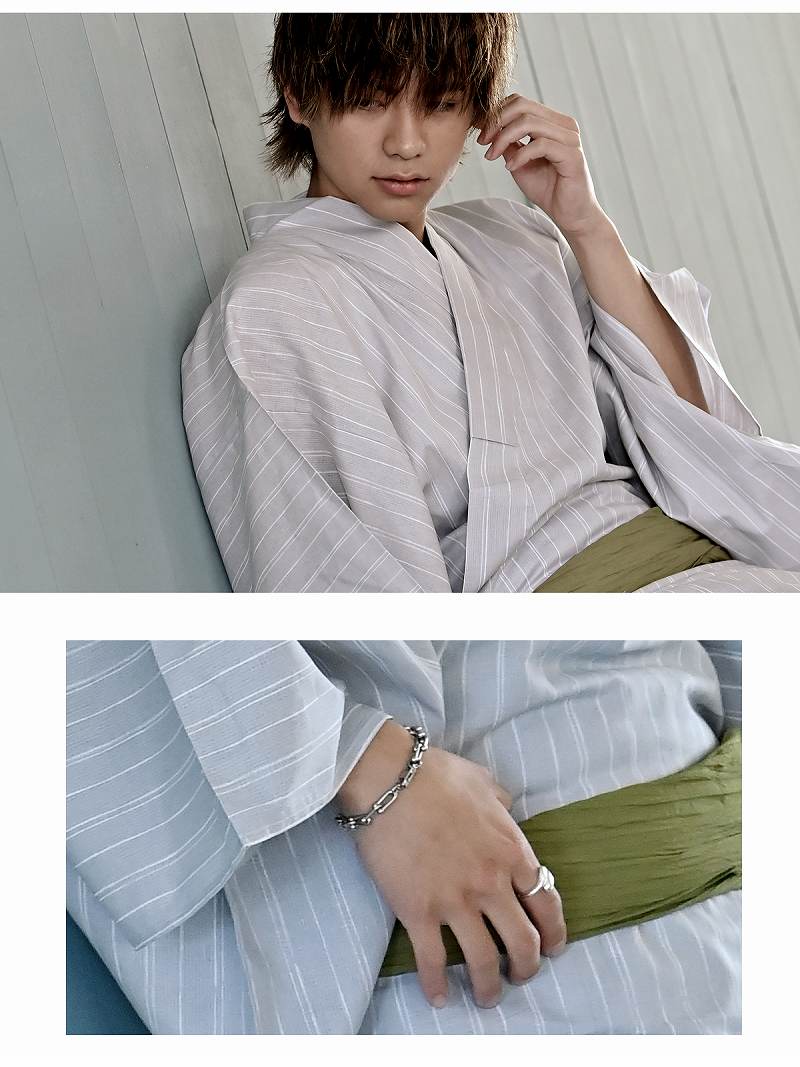 ◆Information◆ ☆ egg(エッグ)専属モデルハリュー(はりゅー)くん着用メンズ浴衣。 ☆夏らしさ溢れるブルーカラーが大人クールな印象を醸し出すメンズ浴衣です。 ☆ 上質な綿麻素材でさらりとした高級感をたっぷりと漂わせてくれます。 ☆グリーンの帯で華やかさをプラスするメンズ浴衣は、上品な着こなしができる高級浴衣になっています。 ◆カラー◆ グレー ◆サイズ◆ M/L ◆素材◆ 浴衣:綿85%、麻15%、帯:ポリエステル100% ◆商品仕様◆ 付属:◯(帯) ※浴衣は一枚布でございますので透け感が御座います事、予めご了承下さいませ。 ※全て実寸です ◆モデル◆ 名前:ハリュー 身長:176cm 着用:Mサイズ