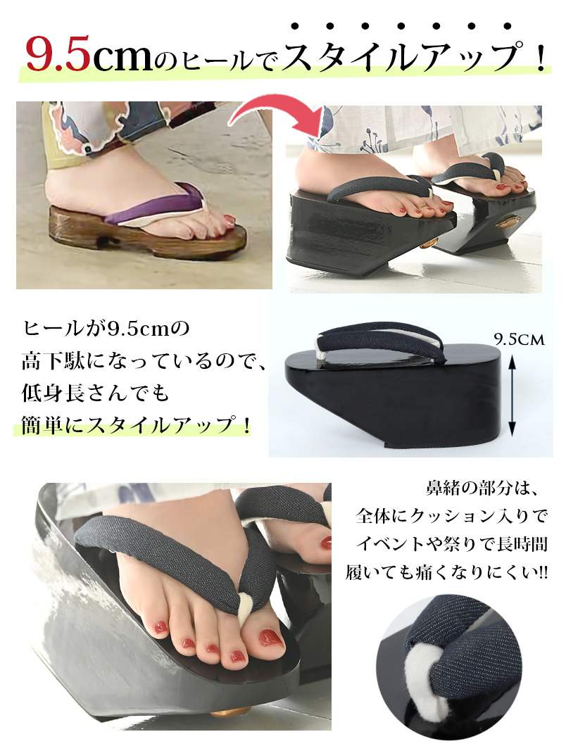 ◆Information◆ ☆CYBER JAPAN DANCERS(サイバージャパンダンサーズ)の渡辺加苗(かなへぇ)ちゃん着用浴衣小物。 ☆9.5cmの厚底下駄は浴衣姿や着物・振り袖姿のときにスタイルを良く魅せてくれる女性用厚底草履♪ ☆鼻緒の柔らかい素材と軽量ヒールが長時間歩いても痛くなりにくいのが魅力の一つの厚底サンダル♪ ☆光沢感のある深みな黒色が高見え効果抜群なこっぽりは、お手持ちの浴衣の色にも合わせやすいシンプルなデザインの厚底下駄♪ ◆カラー◆ ブラック/レッド ◆サイズ◆ フリーサイズ ◆素材◆ - ◆商品仕様◆ 付属:× ※全て実寸です ◆モデル◆ 名前:かなへぇ 身長:164cm 着用:フリーサイズ