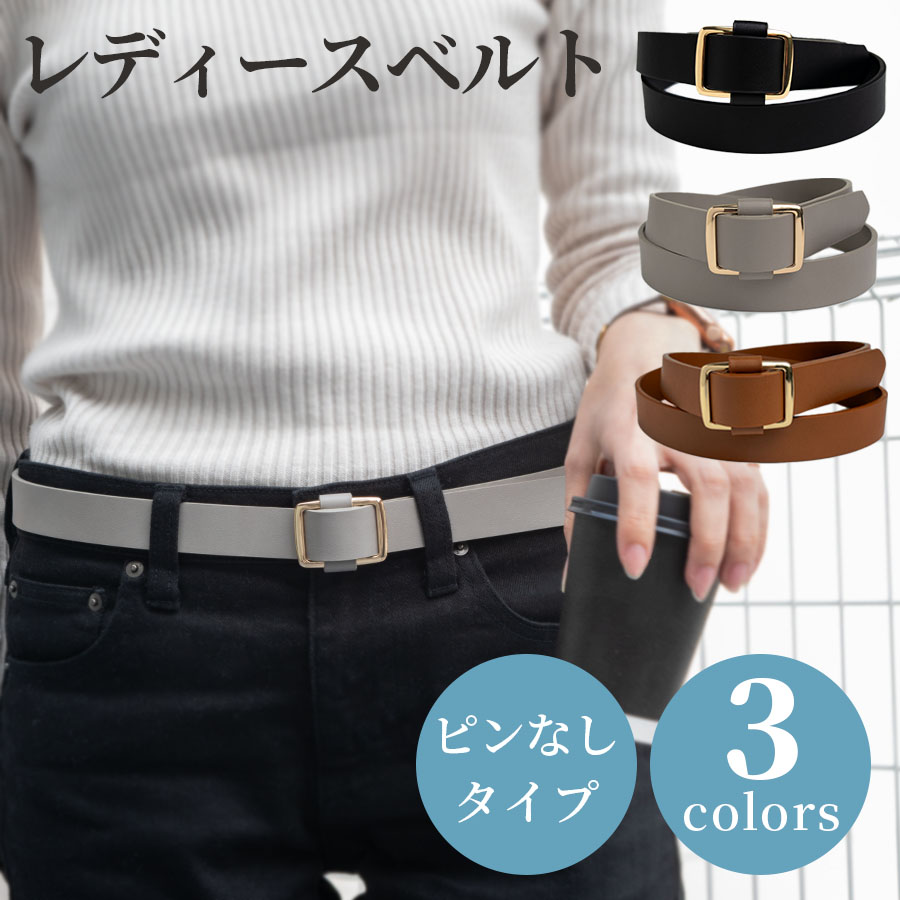 ベルト レディース ピン無しベルト プレーン PUレザーベルト 細 シンプル オフィス カジュアル 通勤 通学 合成皮革 合皮 フリーサイズ ギフト sladys 爆買