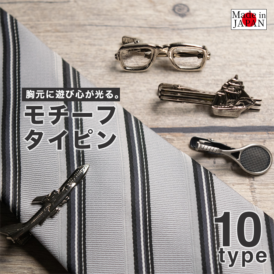 10種から選べる!遊び心が溢れるモチーフタイピン。