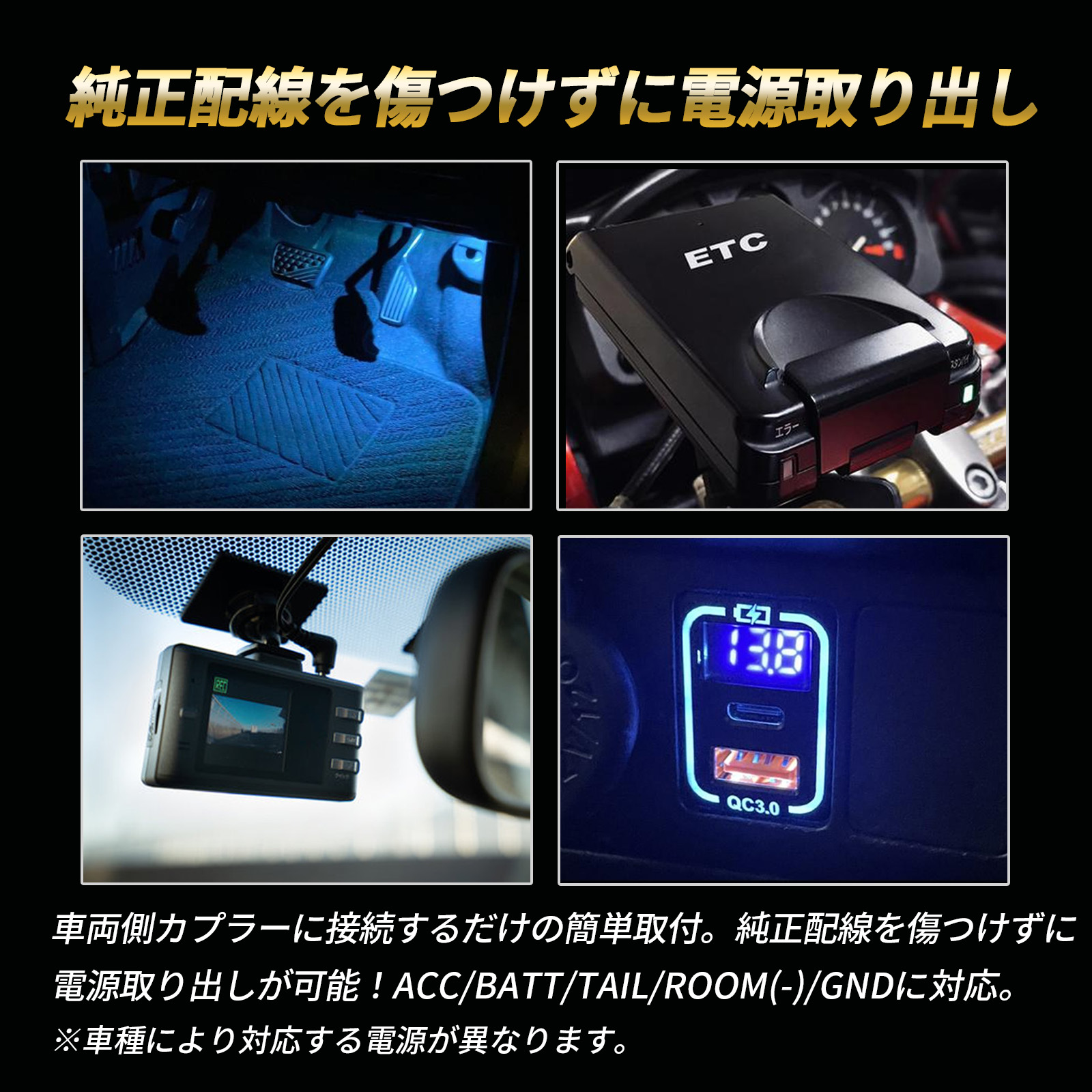 純正配線を傷つけずに電源増設が可能なため初心者さんでも安心してご使用いただけます。