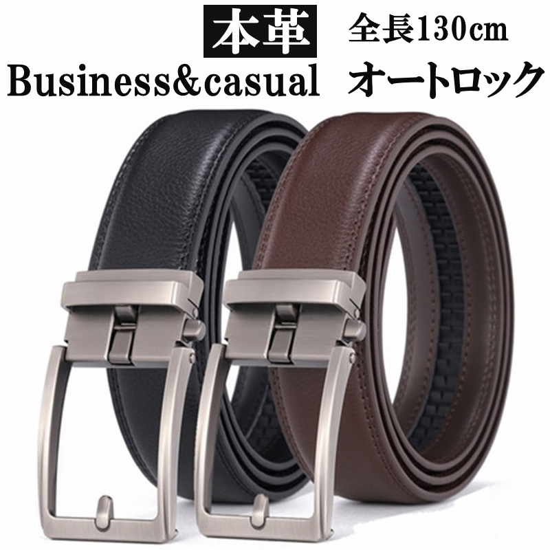 ベルトメンズ 本革 穴なしベルト 良質な牛革使用 オートロック 2カラー 130cm
