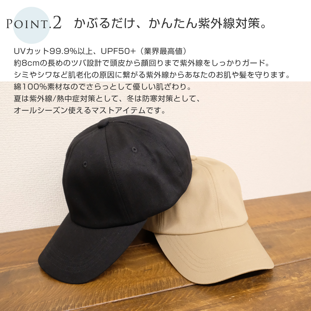 【かぶるだけで紫外線対策◎】キャップ レディース 深めタイプ つば長い UVカット 紫外線 対策 日焼け防止 コットン 男女兼用 大きめ シンプル おしゃれ 可愛い 帽子