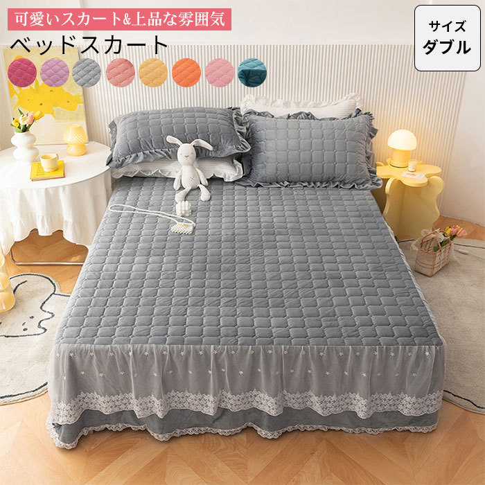 ベッドスカート 枕カバー 3点セット かわいい プリンセス フリル付き 寝具 保温性いい