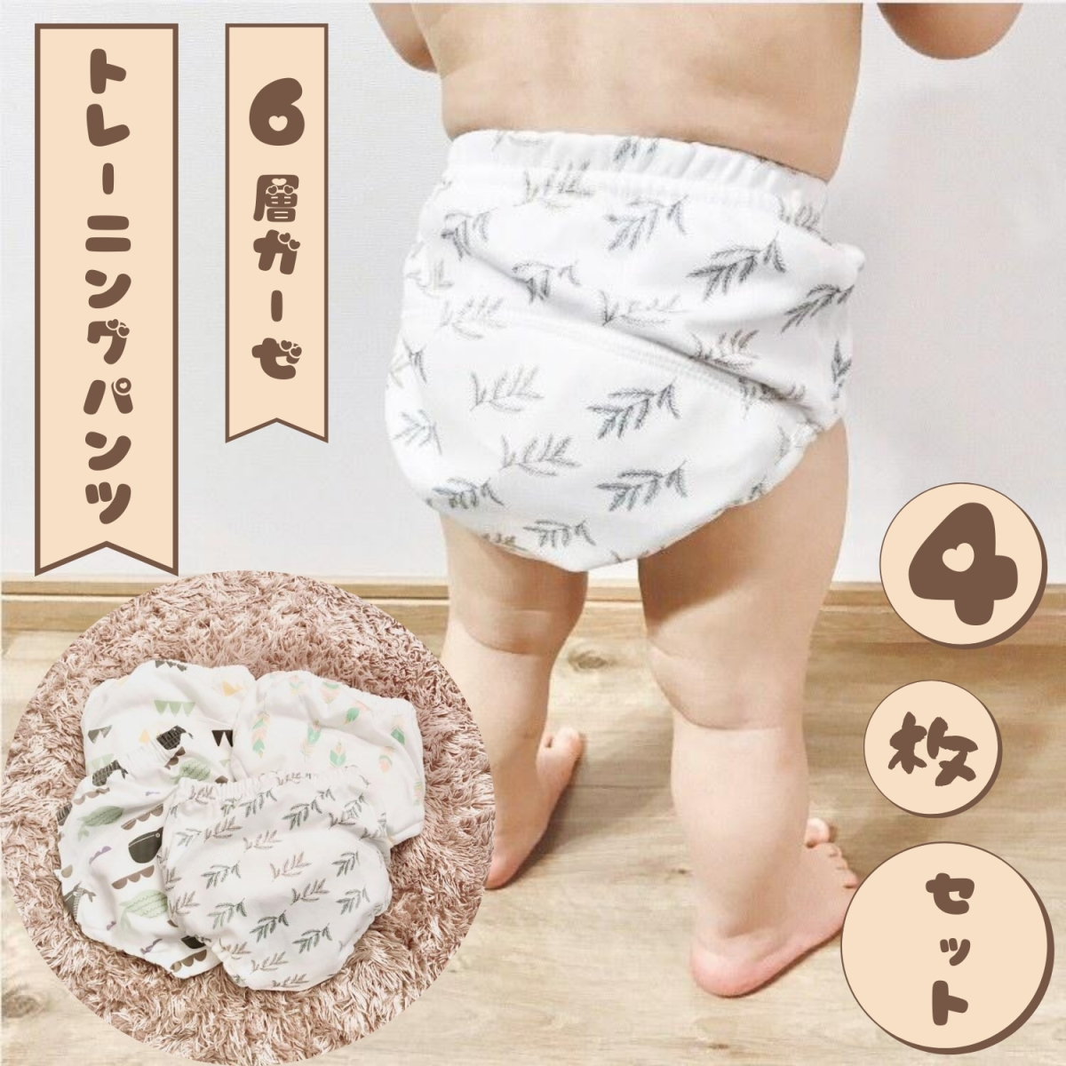 Berpy 4枚セット トレーニングパンツ 6層ガーゼ 男の子 女の子 ユニセックス