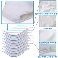 6層のガーゼ、1層タオル地、1層のTPU防水層
