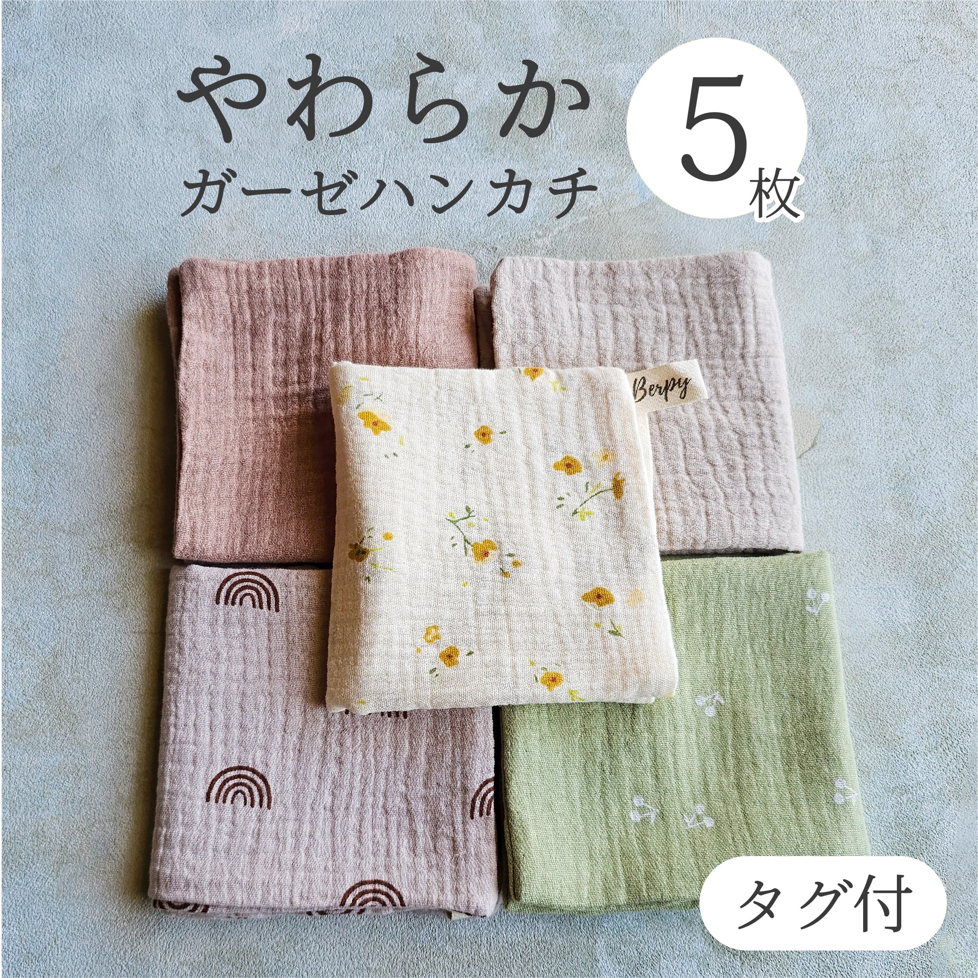 ガーゼハンカチ 無地 4層 赤ちゃん 可愛いニュアンスカラー ベビー用 Berpy バーピー (5枚セット)