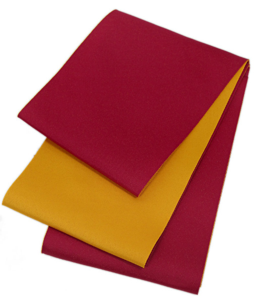 新品★浴衣帯 日本製シンプルリバーシブル ゆかた帯 無地 黄×エンジ 124 メール便対応