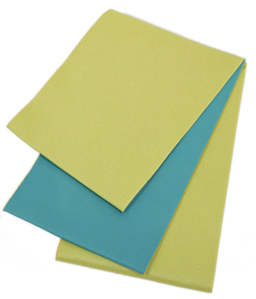 新品★浴衣帯 日本製シンプルリバーシブル ゆかた帯 無地 鶸色×水色 132 メール便対応