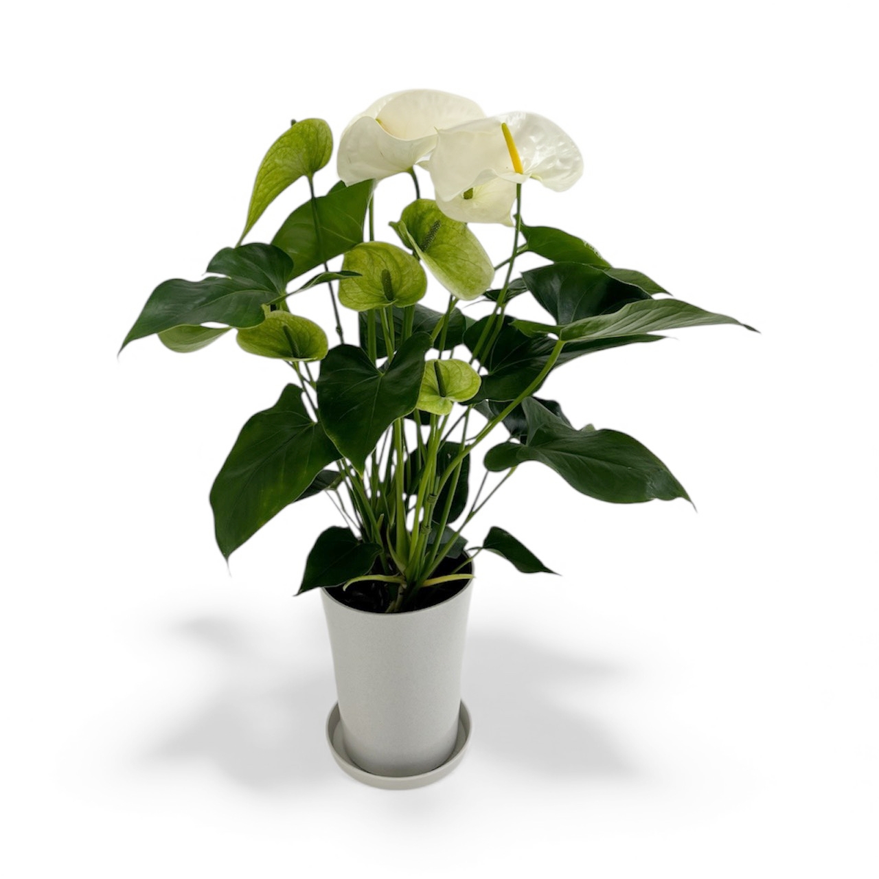 アンスリウムは品種や季節によって花の色合い(淡め・濃いめ等)が異なります。