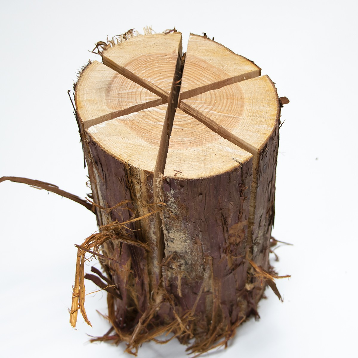 木表面の切れ目に、燃えやすいもの(おがくず、紙等)を詰めて火をつける。点火しない、しずらい場合は着火剤をお使いください。